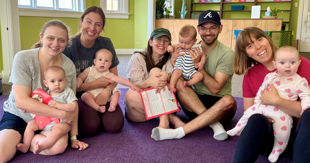In the Music Together® Babies class, for infants from birth through 8 months, you'll learn a lot of fun musical activities for babies. You'll also learn to recognize which of your baby's behaviors are musical so that you can support their development at the time when your baby's brain is at its most receptive. The Babies class has other benefits, too! Singing and dancing with your baby is a beautiful way for the two of you to bond. And making music with other parents of newborns is a great way to make new friends in your community who are as sleep deprived as you!